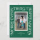 This modern festive holiday card features the words "merry everything and a happy always" framed around a single photo on the front. It has space for a second photo on the back. The front of the card also has space for your name and the year.