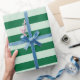 Horizontal stripes of green and mint alternate on this pattern wrapping paper.