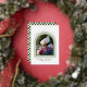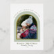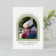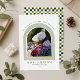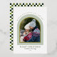 Elegant and modern Christmas card with a gold foil arch family photo design and a green and white retro check on the back. A bright, minimalist holiday card that’s easy to personalise with your photo and message for a stylish, timeless keepsake.