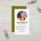 Present your brand with confidence using this modern professional photo business card in elegant green minimalist style. Customize with your company contact details, website, and social media links for a sleek, cohesive look. The integrated scannable QR code makes it easy for clients to connect instantly online. Perfect for professionals, freelancers, and entrepreneurs seeking a clean, modern networking tool that leaves a lasting impression. 💼📱