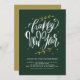 Green Modern Calligraphy and Wreath New Year Party Invitation