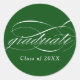 Green Modern Elegant Script Graduation Classic Round Sticker