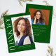 Green Modern Elegant Vertical Two Photo Graduation Thank You Card features a fun and modern type, along with your graduation photo. Add your note of thanks on the back, or leave blank for a handwritten message.