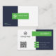 Make a lasting impression with this Green Modern Simple Professional QR Code Scannable Business Card. Featuring a sleek Green-and-white design, it includes your name, title, contact details, and a scannable QR code on the front, while the back highlights your company logo and slogan for a polished, professional look. Ideal for networking and corporate events.