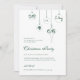 Winter green Christmas monogram bauble ornaments, Christmas party invitation with elegant script font. Detailed hanging green monogram bauble ornament designs. Customise with your initial, names and your party information in green script font and serif lettering. Winter green back. Designed to match our Winter Green Christmas Monogram Bauble Collection.