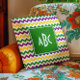 Green Monogrammed Mardi Gras Zigzag Cushion