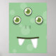 Cute and fun Green Monster Kawaii Face Poster Print. Great for kids and adults.
