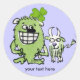 Make personalised stickers with a cute cartoon green monster and his goat with a purple nose. They are together for St. Patricks day. It's Billy goat Seamus and his friend Grady McDoogle.