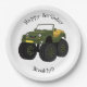 Green monster truck cartoon illustration paper plate