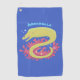 The golf towel exceeded my expectations! My husband actually approved of it! He liked the picture quality, thickness and overall usefulness of the golf towel I ordered to commemorate his lowest ever golf score. He liked it so well that I ordered 8 more towels with photos of his home golf course. Each one of the eight has the name of one of his golf group members. I will give them as party favors at my husband's 70th birthday party later this year. The different names were easy to add because the Zazzle template is so very easy to use. The colors were bright and authentic in all 9 of the towels that I made. The one of the 9 that I ordered has come out of the wash and line dry looking great.