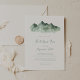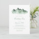 This green mountain country kitchen tea bridal shower invitation is perfect for a rustic wedding shower. The design features a watercolor hand-painted green mountain, inspiring a countryside theme.