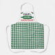 Christmas apron with printed green gingham, your name, a charming Christmas pun - baking spirits bright - and stars and holly and a rolling pin in red, white, and green. Personalised Christmas baking apron with a cute retro design.