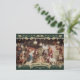 Celebrate the holidays with this green religious Christmas postcard featuring the nativity scene.