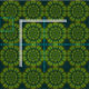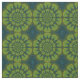 This fabric has a bright green and blue patterned design. It's perfect for making your own clothes or decorating the home!