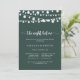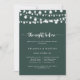 This green night before rehearsal dinner invitation is perfect for a rustic event. The design features beautiful hand-painted string lights in a green background.