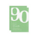 Introducing a trendy green and white 90th birthday party invitation that seamlessly blends the old-world charm of the bold serif font number '90' with a modern, user-friendly personalizable template. This invitation isn't just a card, it's a meaningful keepsake to cherish the milestone of turning 90.