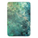 A dynamic abstract composition features an array of swirling shapes and patterns in various shades of green, black, and blue