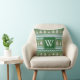 Norwegian knit inspired green with white Nordic fir trees pattern. The centre features a green decorative square and your choice of white monogrammed letter. The back of the pillow is full pattern.
