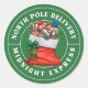 North Pole Delivery gift sticker in green featuring Santa’s magic bag full of toys.