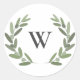 Green olive branch wreath monogram Classic Round Sticke