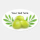 Green olives with decorative branches oval sticker