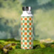 Green Orange Brown Chequered Gingham Pattern Water Bottle