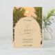 A tropical floral green ivory and orange sunset monogram initials stylish theme wedding invitations.