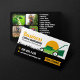 This bold and fun business card design features a vibrant green and yellow colour scheme, a playful lawnmower illustration, and a clear, concise layout that highlights your services. The back of the card features a collage of photos showcasing your expertise and a list of your services.
