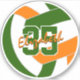 This team colours volleyball sticker features the image of a green, orange and white volleyball, upon which you can personalise the athlete's jersey number and name - by katz_d_zynes