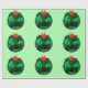 Green Ornament With Holly on Green Wrapping Paper