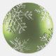 Round sticker with an image of a beautiful green Christmas ornament decorated with glittery white snowflakes. See matching confetti and wrapping paper. See the entire Christmas Sticker collection under the CARDS & STICKERS category in the HOLIDAYS section.