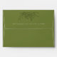 Elegant and chic return address envelope featuring a beautifully hand drawn floral bouquet in black paired with dainty typography in white over an earthy green envelope background to juxtapose the nature and design.