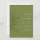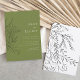Modern, playful, and yet sophisticated, this wedding invitation features a hand drawn overflowing floral bouquet paired with chic typography in a beautifully natural green colour scheme. The contrast of black floral and green type adds an extra edge of glamour.