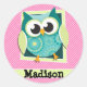 Green Owl on Pink & White Stripes Classic Round Sticker
