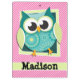 Cool, colourful kid's owl, teal green woodland owl design on pink and white stripes, striped pattern. Perfect gift for baby, toddler, kids, children, teens, or adults! Personalised the design template by adding a child's name or custom text. Visit our store, Birthday Party House, for more great customisable girly girl products!
