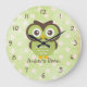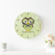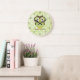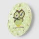 Green Polka Dot wall clock with green owl, perfect for a little girl's room. Personalise with her name.