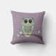 Custom American MoJo Throw Pillow 20" x 20" has a green owl on a limb with flowers and a purple polka dot pattern background.