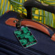 Features a green tropical palm leaf design. Personalise with a name on the front, and a name and address on the back.