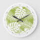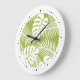 Green Palm Leaves Rainforest Pattern Large Clock