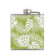 Green Palm Leaves Rainforest Pattern Monogram Hip Flask