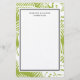 Personalised stationery with a repeating pattern of large palm leaves on an olive green background. Trendy modern and tropical. A white rectangle with a black inner border layered over top with your personalised info inside.