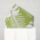 Tissue paper with a repeating pattern of large palm leaves on an olive green background. Trendy modern and tropical.