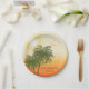 Green Palm Trees Orange Sunset Tropical Birthday Paper Plate