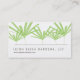 Artistically-rendered green palm fronds make for a unique graphic identity on this white business card. Use the area on the front for your business name or your name, along with your web site address. The backside allows ample space to update with your contact info. © 1201AM DESIGNS