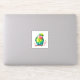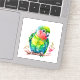 Contour sticker with a cute parrot illustration. A little green parrot with blue and yellow colours blending together. Neck has a vibrant shade of reddish pink.