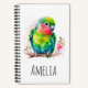 Spiral notebook with a cute parrot illustration. A little green parrot with blue and yellow colours blending together. Neck has a vibrant shade of reddish pink.