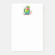 Sticky notes with a cute parrot illustration. A little green parrot with blue and yellow colours blending together. Neck has a vibrant shade of reddish pink.