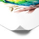 A poster with a cute parrot illustration. A little green parrot with blue and yellow colours blending together. Neck has a vibrant shade of reddish pink.