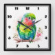 Green Parrot - Cute Baby Bird Square Wall Clock