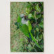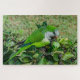 Painting of wild green parrot on the green bush in a park in Spain. Also known as the Monk parakeet or Quaker parrot